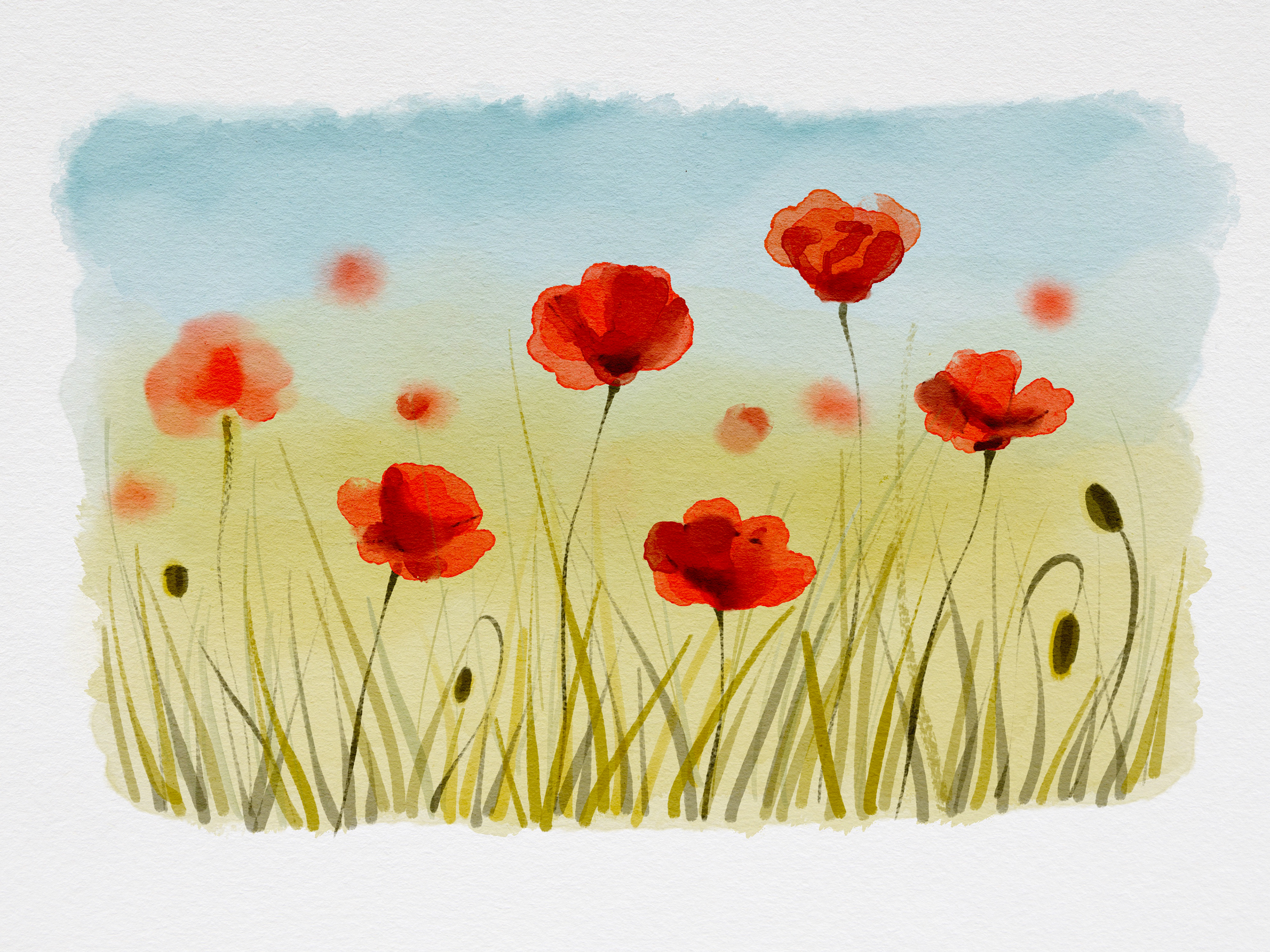 Digital Watercolor Poppies