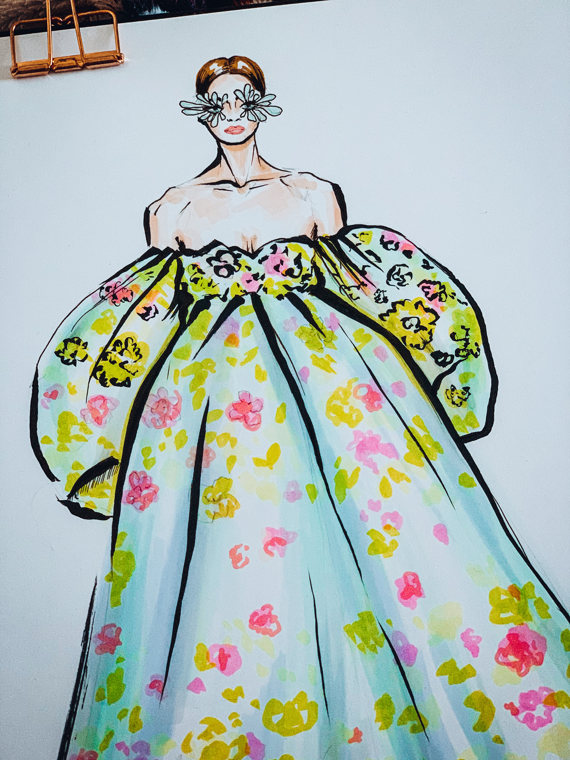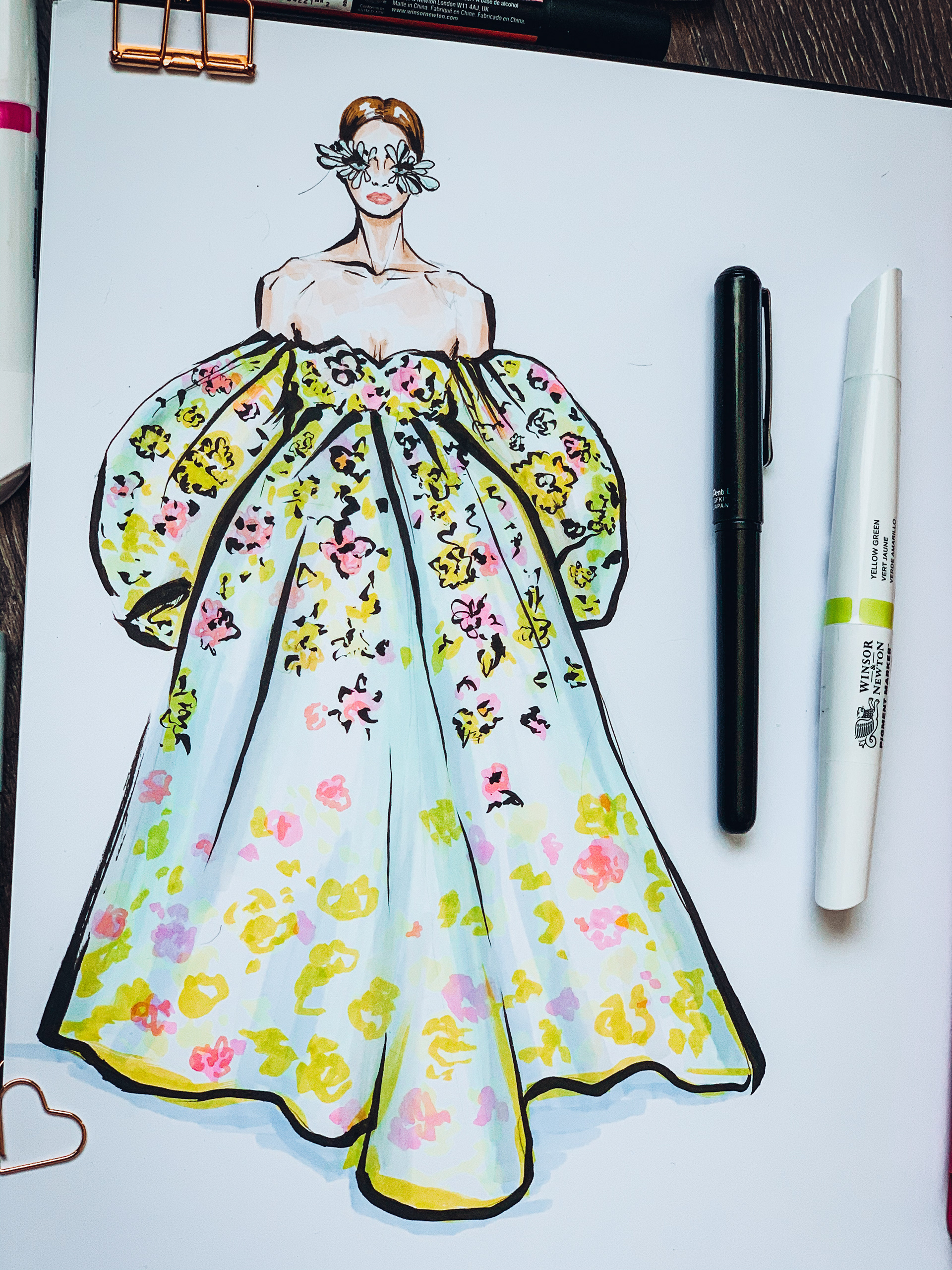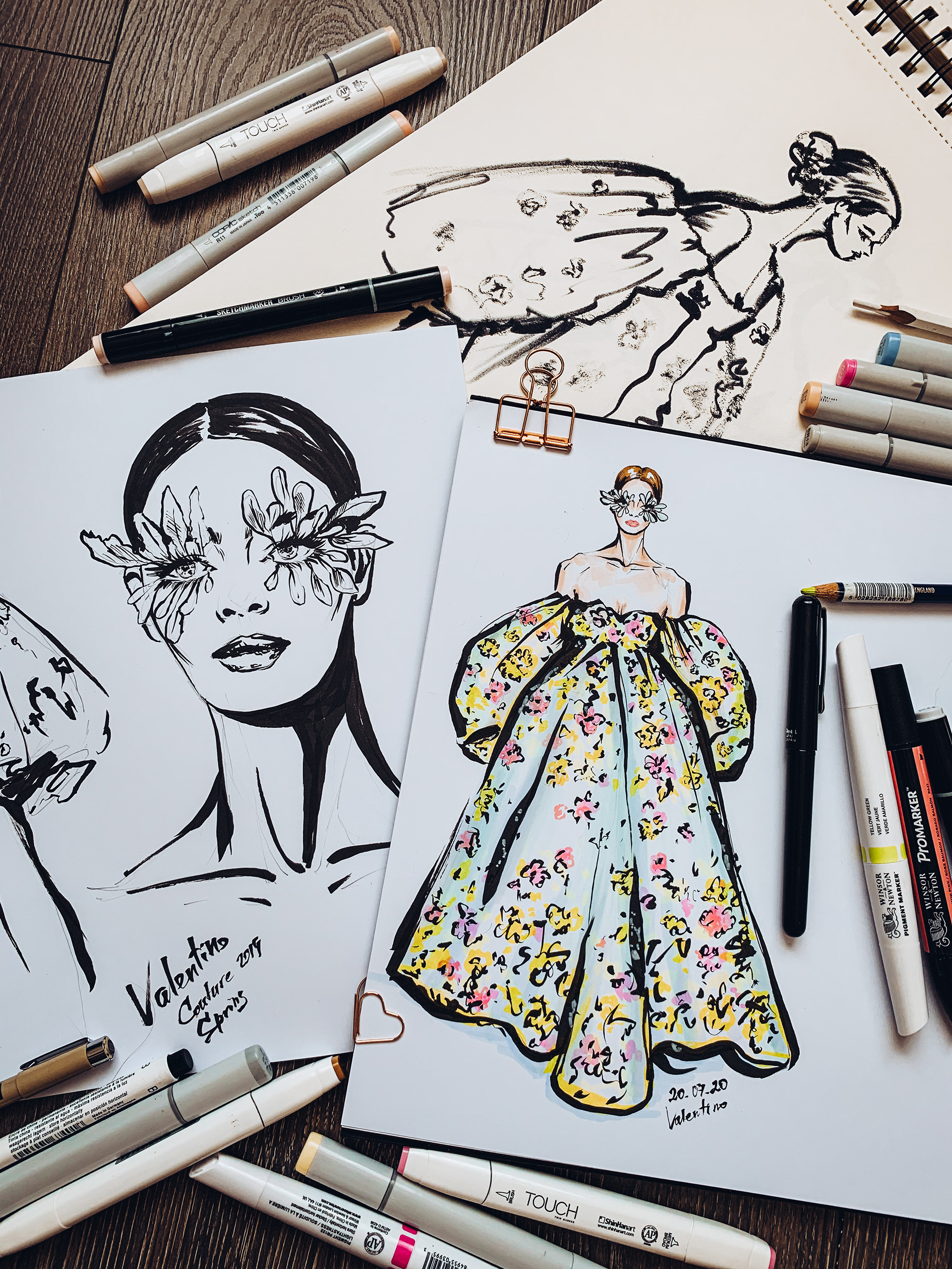 Fashion illustration Valentino Couture Spring 2019. Created with markers and Pentel brush pen.