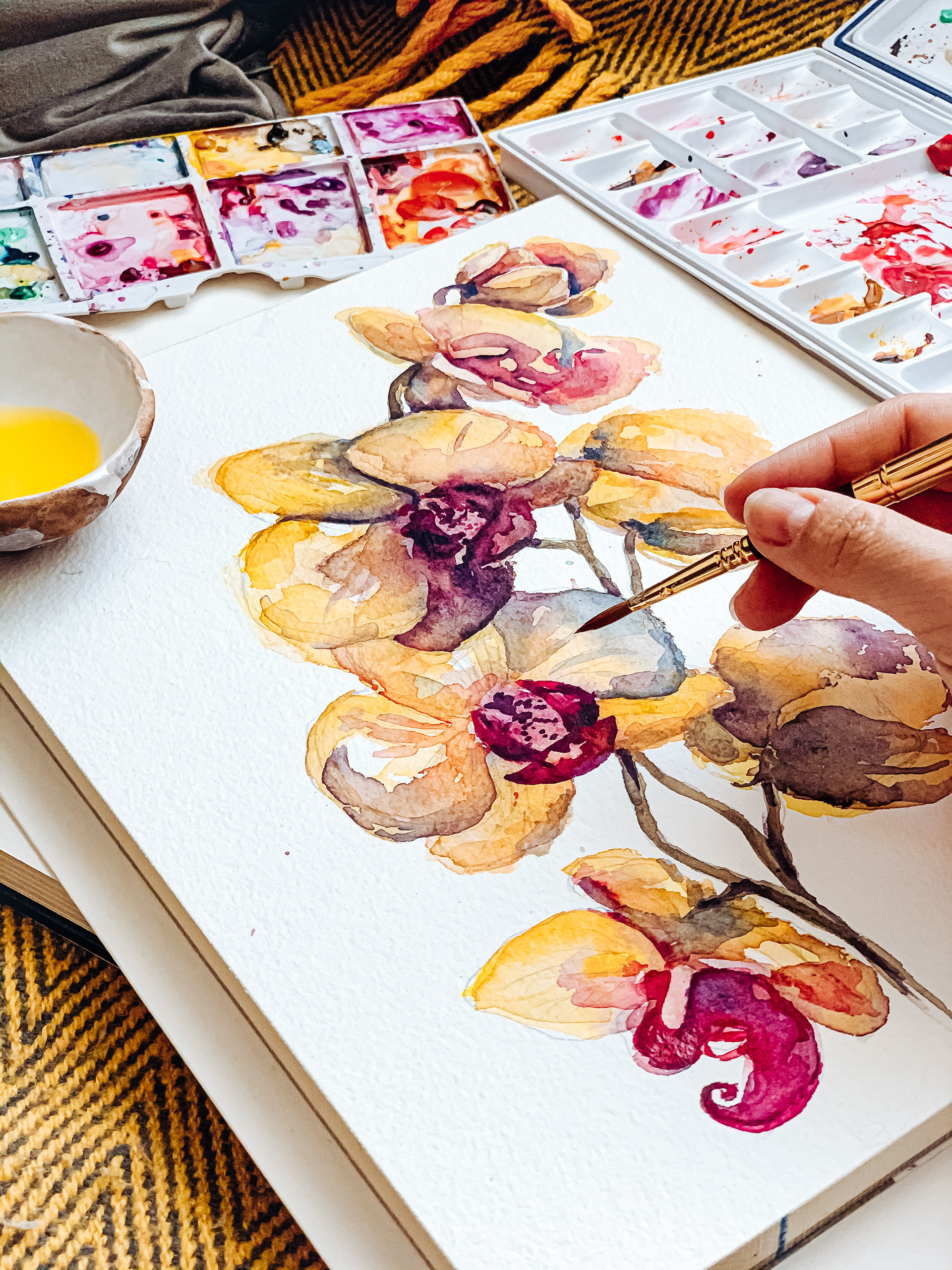 Watercolor yellow orchids